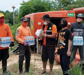 เยี่ยมให้กำลังใจเจ้าหน้าที่ป้องกันและบรรเทาสาธารณภัยจังหวัดศรีสะเกษ ทีมติดตั้งเครื่องสูบน้ำระยะไกล