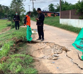 ลงพื้นที่สำรวจ ถนนบ้านปลาซิวน้อย หมู่ที่ ๙ ตำบลหนองใหญ่อำเภอเมืองจันทร์ จังหวัดศรีสะเกษ เนื่องจากเกิดการสไลด์ของดินทำให้ถนนทรุดตัว