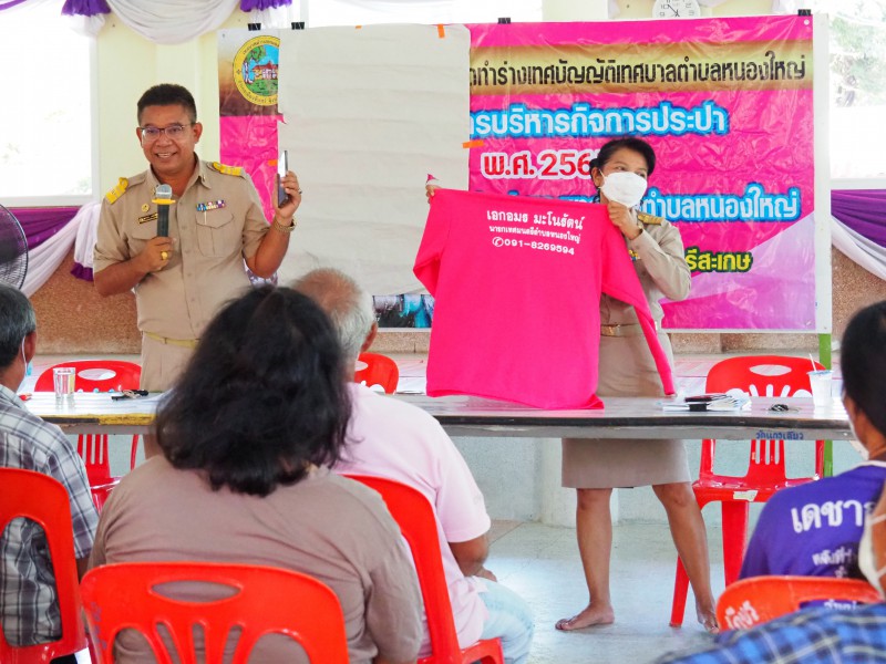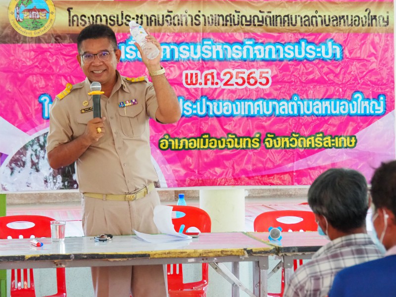 วันจันทร์ที่ ๒๐ มิถุนายน ๒๕๖๕ เวลา ๐๙.๐๐ น. เทศบาลตำบลหนองใหญ่ นำโดยนายเอกอมร มะโนรัตน์นายกเทศมนตรีตำบลหนองใหญ่ พร้อมด้วย นายนัฐกานต์ มะโนรัตน์กำนันตำบลหนองใหญ่ ราษฎรบ้านแกงเลี้ยว หมู่ที่ ๖ ข้าราชการ พนักงาน ลูกจ้างเทศบาลตำบลหนองใหญ่ ร่วมประชุมประชาคม เพื่อจัดทำร่างเทศบัญญัติเทศบาลตำบลหนองใหญ่ เรื่อง การบริหารกิจการประปา และการรับโอนกิจการประปาจากราษฎรบ้านแกงเลี้ยวและคณะกรรมการบ้านแกงเลี้ยว หมู่ที่ ๖ ณ ศาลาการเปรียญวัดบ้านแกงเล้ยว ตำบลหนองใหญ่ อำเภอเมืองจันทร์ จังหวัดศรีสะเกษ