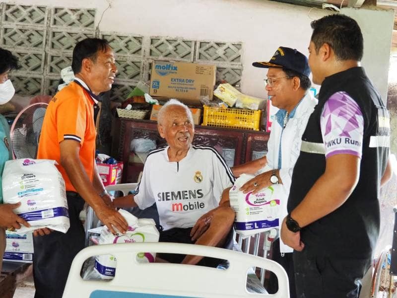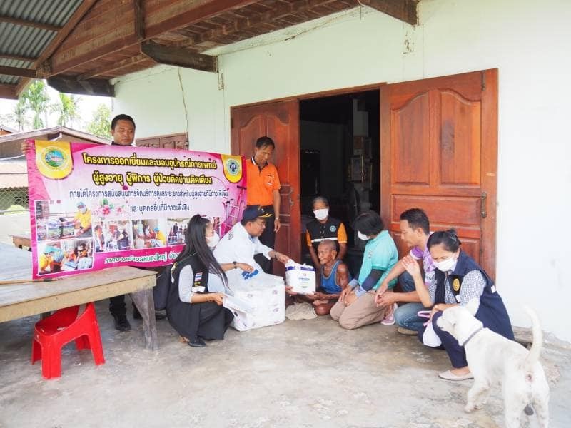และลงพื้นที่มอบอุปกรณ์ทางการแพทย์ที่จำเป็นสำหรับผู้ป่วยติดบ้านติดเตียงศูนย์พัฒนาคุณภาพชีวิตผู้สูงอายุผู้พิการเทศบาลตำบลหนองใหญ่ ณ บ้านหนองสาด หมู่ที่ ๕ ตำบลหนองใหญ่ อำเภอเมืองจันทร์จัง หวัดศรีสะเกษ