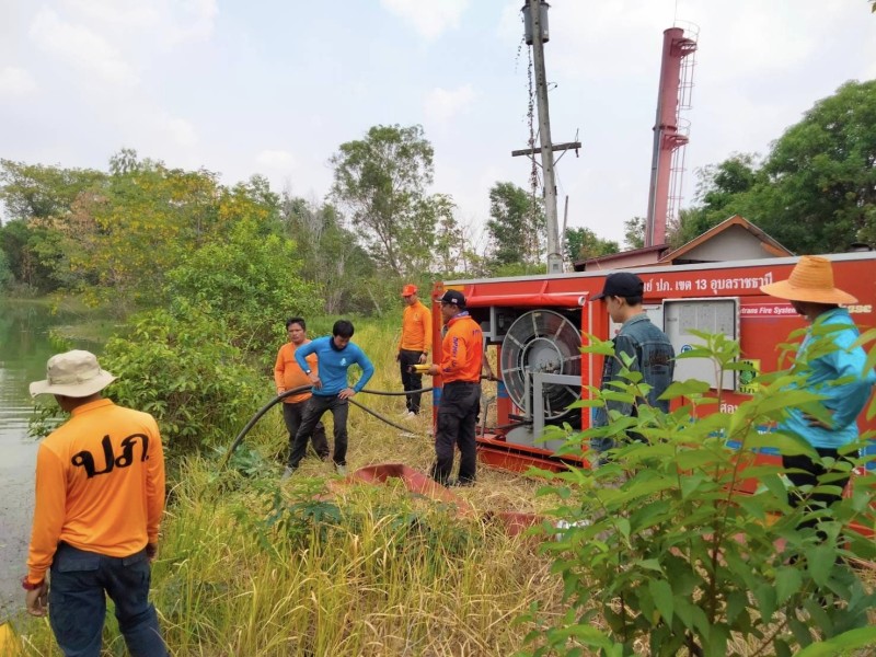 Gallery :: เทศบาลตำบลหนองใหญ่ร่วมกับป้องกันบรรเทาสารภัยเขต ๑๓ อุบลราชธานี ฯ สนธิกำลังติดตั้งเครื่องสูบน้ำระยะไกลและวางท่อสูบน้ำบริเวณหนองแสงบ้านอะลาง หมู่ที่ ๓ ไปหนองแกงเลี้ยว หมู่ที่ ๖ ตำบลหนองใหญ่ อำเภอเมืองจันทร์จังหวัดศรีสะเกษ เพื่อแก้ปัญหาภัยแล้งการขาดแคลนน้ำอุ