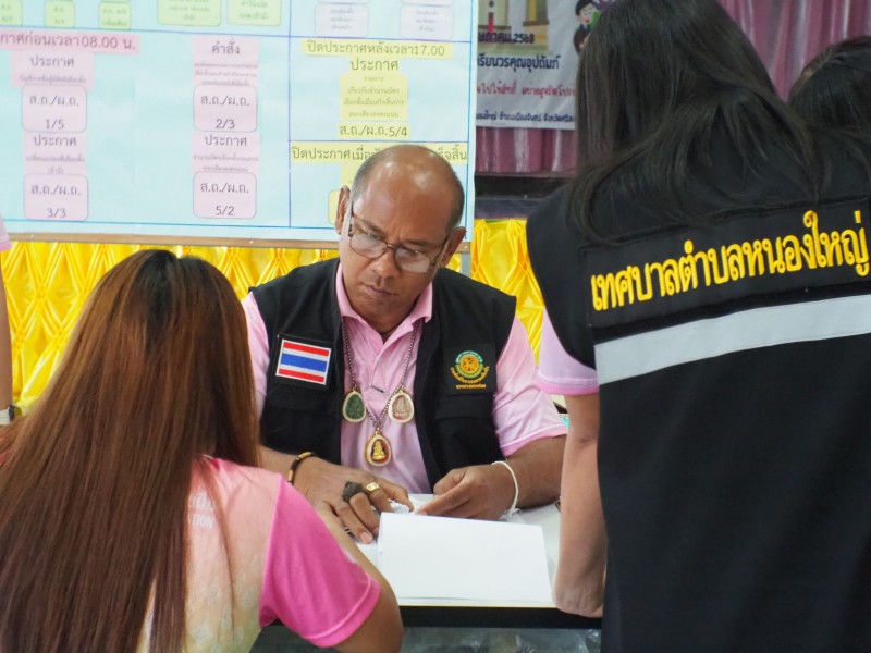 นางวรารัตน์ สมพงษ์ ประธานคณะกรรมการเลือกตั้งประจำเทศบาลตำบลหนองใหญ่ พร้อม ส.ต.ท.วรศักดิ์ พรหมพิลา ผู้อำนวยการการเลือกตั้งประจำเทศบาลตำบลหนองใหญ่ นายยอดเพชร เจือจันทร์ คณะกรรมการการเลือกตั้ง ร.ต.ท. อัครเดช เลขลบ คณะกรรมการการเลือกตั้ง และเจ้าหน้าที่ผู้ปฎิบัติงาน ส่งมอบวัสดุอุปกรณ์การเลือกตั้ง