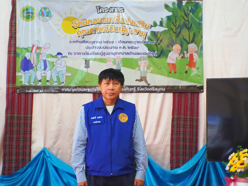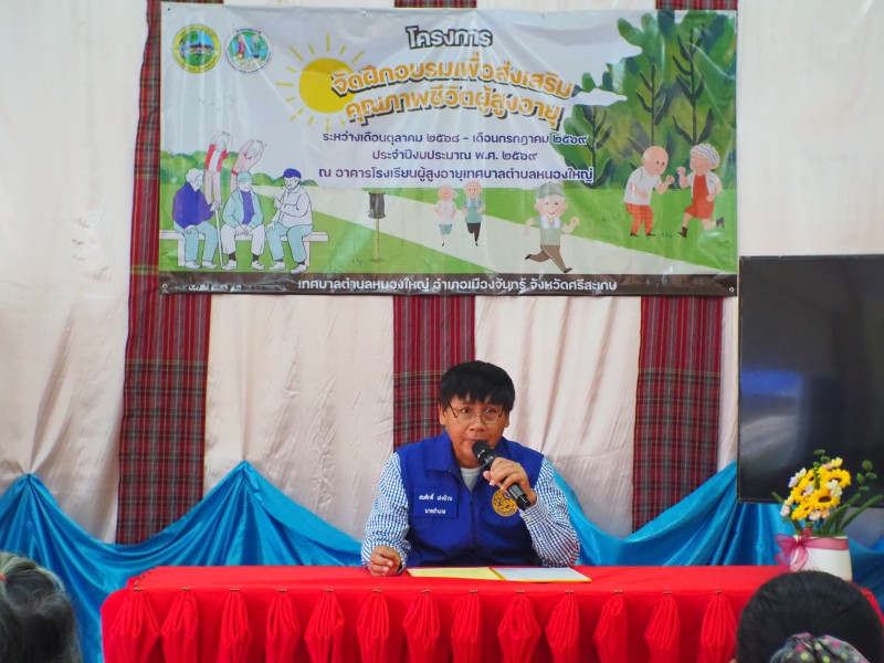 วันศุกร์ที่ ๒๔ ตุลาคม ๒๕๖๘ เวลา ๐๙.๐๐ น. เทศบาลตำบลหนองใหญ่ งานสำนักปลัดได้รับเกียรติจากนายสมศักดิ์ เอ่งฉ้วน นายอำเภอเมืองจันทร์ เป็นประธานในพิธีเปิดโครงการจัดฝึกอบรมเพื่อส่งเสริมคุณภาพชีวิตผู้สูงอายุ