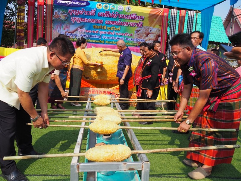 Gallery :: เปิดงานสืบสานประเพณีบุญข้าวจี่ เจดีย์ข้าวเปลือก บุญผะเหวด เทศน์มหาชาติ” อำเภอมือวงจันทร์ ครั้งที่ ๑๐ ประจำปี พ.ศ . ๒๕๖๗ จัดขึ้นระหว่างวันที่ ๒๓-๒๕ กุมภาพันธ์ พ.ศ.๒๕๖๗ ณ วัดปลาซิว ตำบลหนองใหญ่ อำเภอเมืองจันทร์ จังหวัดศรีสะเกษ